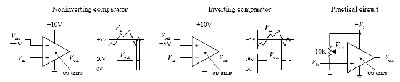 من المرغوب أحياناً معرفة متى تزيد إشارة ما عن مستوى محدد مسبقاً أو معرفة أي من الإشارتين أكبر من الأخرى، ويمكن تصميم دارات بسيطة بواسطة مضخم العمليات للقيام بهذا العمل، إذ ينتقل جهد الخرج في دارة المقارن غير العاكس من الصفر إلى قيمة عالية(high) تساوي تقريباً جهد الإشباع الموجب عندما يصبح جهد الدخل أكبر من الجهد المرجعي المطبق على المدخل العاكس للمقارن .أما في دارة المقارن العاكس فإن الخرج ينتقل إلى الصفرعندما يكون جهد الدخل أكبر من الجهد المرجعي المطبق على المدخل غير العاكس، وطبعاً يكون الخرج على حالة (high) إذا كان الجهد المرجعي أكبر من جهد الدخل . في الدارة العملية (على يمين الرسم) يستخدم مقسم جهد لضبط الجهد المرجعي على القيمة المرغوبة.